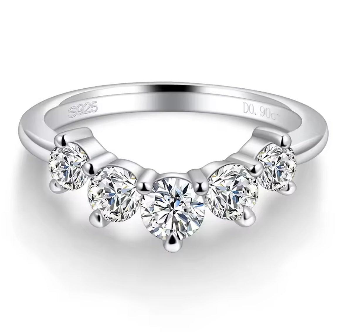 925 Sterling Silver Curved Moissanite Ring